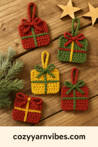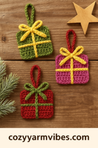 Brighten up your holiday décor with these adorable crochet gift ornaments — perfect for hanging on your Christmas tree, attaching to presents, or using as festive garland décor. Each mini gift box is quick, easy, and fun to make using just basic stitches. Let’s dive in!