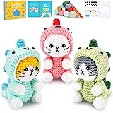 $20.99 (as of December 11, 2025 08:57 GMT +00:00 – More infoProduct prices and availability are accurate as of the date/time indicated and are subject to change. Any price and availability information displayed on [relevant Amazon Site(s), as applicable] at the time of purchase will apply to the purchase of this product.)Crochet Kit for Beginners – 3 PCS Dinosaur Cat Crochet Kits with Step-by-Step Video Tutorials, Beginner Crochet Kit for Adults Kid, Crochet Animal Kit for Starters, Cat Dressed as Dinosaur Crochet Set