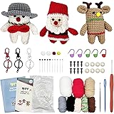 Honkdtyun Crochet Kit for Beginner,Three Patterns-Santa Claus, Christmas Deer, and Children.Knitting Kit for Adult Kids with Step-by-Step Video Tutorials and Yarns, Hook, Accessories