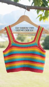 Easy Rainbow Stripe Crochet Crop Top – Free Pattern & Guide