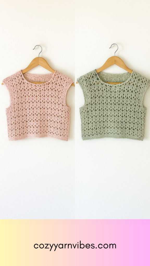 Lacy V-Stitch Summer Crop Top – Easy 2-Row Repeat Crochet Pattern